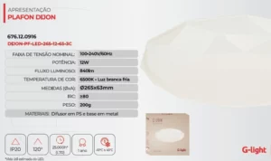 Querolustre Plafon Dijon 265 Led 12w 6500k Autovolt **