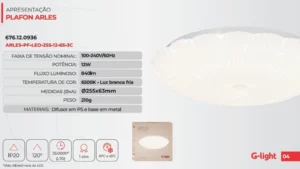 Querolustre Plafon Arles 255 Led 12 W 6500k Autovolt **