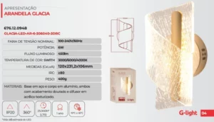 Querolustre Arandela Glacia Led 6w 3/4/6000k **