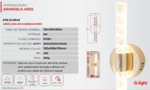 Querolustre Arandela Ares Led 4w 3000/6000/4000k **
